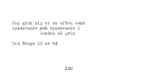 //// Jag gick mig ut en afton sent //// spaserande pch sp a se rande i //// lunden så grön //// 9:4 Brage 12 nr 84 ////