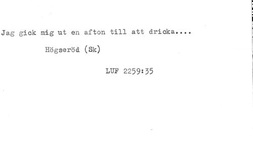 //// ] //// Jag gick mig ut en afton till att dricka.... //// Högseröd (Sk) //// LUF 2259:35 ////