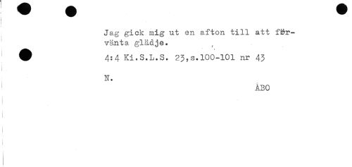 //// Jag gick mig ut en afton till att f&r- //// ' vänta glädje. //// W 4:4Ki.S.L.S. 23,3.100-101 nr 43 //// N. //// ÅBO ////