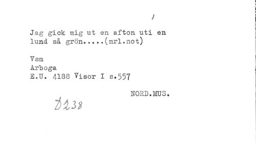 //// Jag gick mig ut en afton uti en //// lund så grön.....(mrl.not) //// Vsm //// Arboga //// E.U. 4138 Visor I s.557 //// NORD.HUS. ////