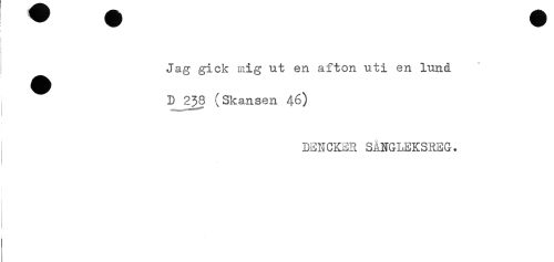 //// Jag gick mig ut en afton uti en lund //// D 238 (Skansen 46) //// j DENCKER SANGLEKSREG. ////