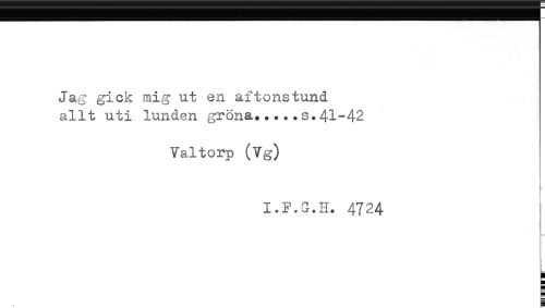 //// Jag gick mig ut en aftonstund //// allt uti lunden gröna.....s.41-42 //// Valtorp (Vg) //// I.F.G.H. 4724 ////