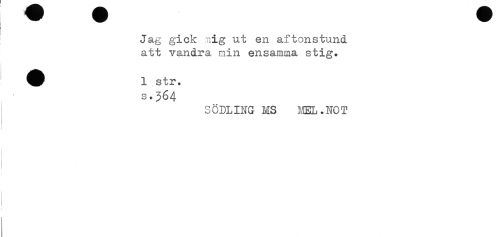 //// Jag gick nig ut en aftonstund //// att vandra min ensamma stig. //// s.364 //// SODLING MS HEL.NOT ////