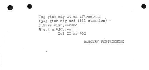 //// Jag gick mig ut en aftonstund //// (jag gick mig ned till stranden) - //// J,Eurs viEbyKaksmo //// W.6.4 n.Sjcb.-s. //// Del II nr 962 //// MNCHEN FÖRTECKI^ING //// j //// i ////