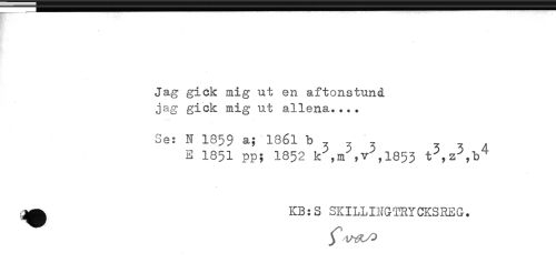 //// v * ^ t ' - < ^ . i ' //// Jag gick mig ut en aftonstund //// jag gick mig ut allena.... //// Se: N 1859 a; 1861 b ^ ^ ' //// E 1851 pp; 1852 k v ,1853 t ////