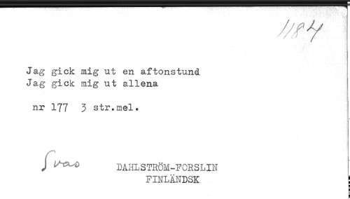 //// Jag gick mig ut en aftonstund //// Jag gick mig ut allena //// nr 177 3 str.mel. //// J DAHLSTRÖM-FORSLIN //// FINLÄNDSK ! //// ! //// H //// r ////