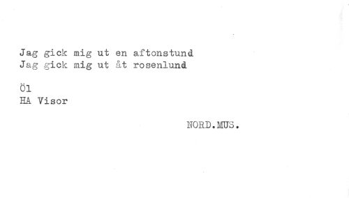 //// Jag gick mig ut en aftonstund //// Jag gick mig ut &t rosenlund //// *. < //// 01 //// HÅ Visor //// NORD. ms. ////