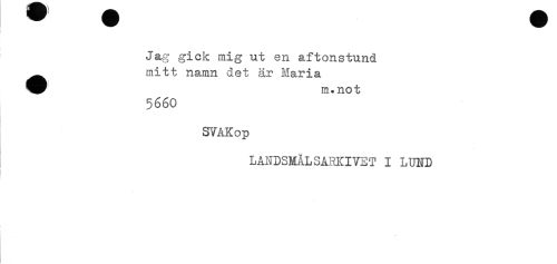 //// Jag gick mig ut en aftonstund //// ^ mitt namn det år Maria //// m.not //// 5660 //// SVAKop //// LANDSMÅLSARKIVET I LUND //// ! ////