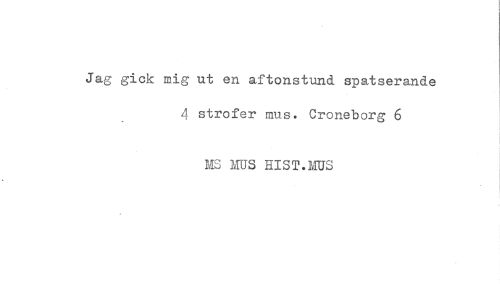 //// Jag gick mig ut en aftonstund spatserande //// , j //// 4 strofer mus. Croneborg 6 //// MS HUS HIST.MUS ////