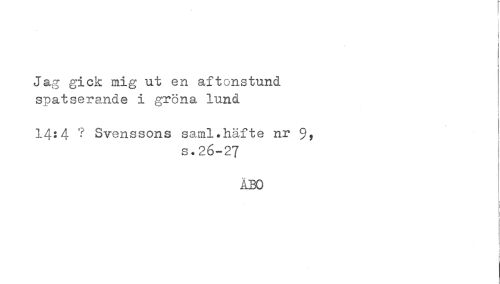 //// i //// < //// f //// Jag gick mig ut en aftonstund //// spatserande i gröna lund //// 14:4 '? Svenssons saml.häfte nr //// s.26-27 //// ABO ////