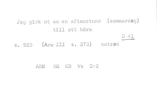 //// Jag rick ut on en e/f tons tu no. (sommardag) //// c i 11 af: höra //// ''i //// . 523 (Arw III s. 273) nocrad //// AMV MS KB Ys 2:2 ////