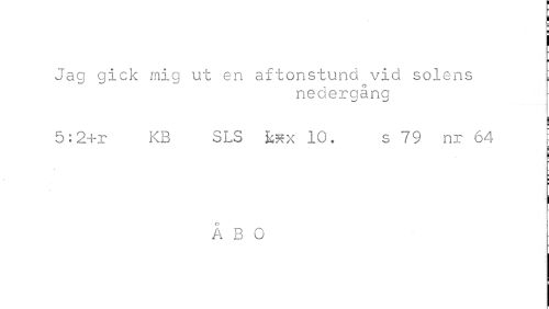 //// i //// ! //// Jag gick mig ut en aftonstund vid solens ^ //// nedergång //// 5:2+r KB SLS ^x 10. s 79 nr 64 //// A B O ////
