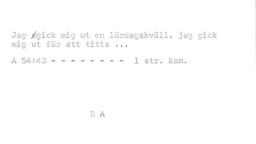//// Jag /gick mig ut en lördagskväll, jag gick //// mig ut för att titta ... //// A 54:43 --- Istr. kom. //// 3, A ////
