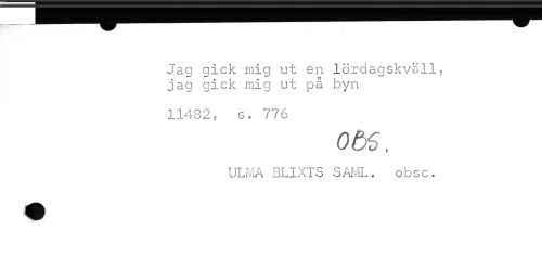 //// Jag gick mig ut en lördagskväll, //// jag gick mig ut på byn //// 11482, s. 776 //// ULMA )L1XTS SAML. uL-sc. ////