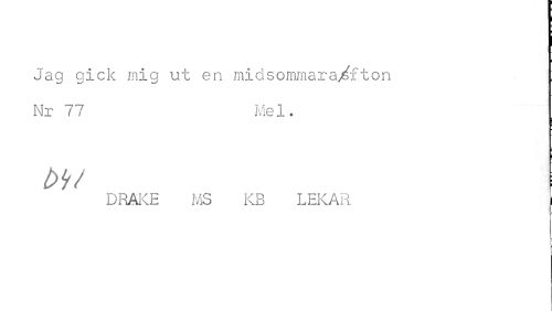 //// Jag gick mig ut en midsommara/fton //// Nr 77 Mel. //// DRAKE MS i (B LEKAR ////
