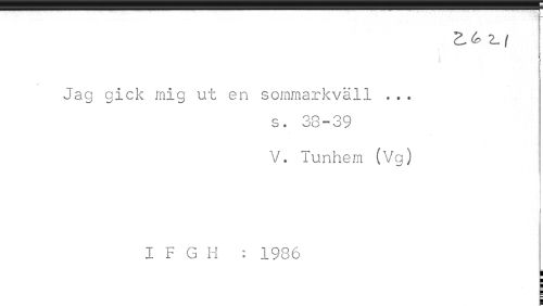 //// Jag gick mig ut en sommarkväll ... //// s. 11-09 //// V. Tunhem (Vg) //// 1 F G H : 1910 ////