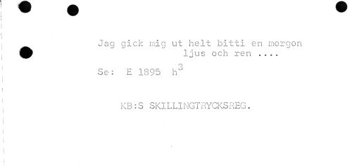 //// 1 //// i Jag gick mig ut helt bitti en morgon //// ljus och ren .... //// Se: E 1895 h ^ //// KB:S SKILLINGTRYCKSREG. //// i //// t ////