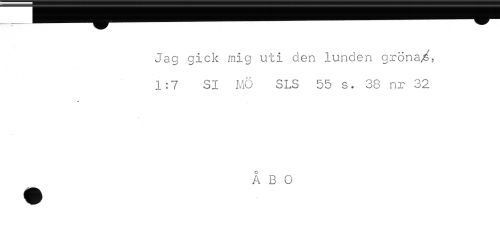 //// Jag gick mig uti den lunden gröna/, //// 1:7 SI MO SLS 55 s. 38 nr 32 //// * //// ^ ABC- ////