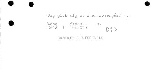 //// Jag gick mig ut i en rosengård ... //// Wasa fragm. m. //// ' Del% I nr'"'310 p ^ . //// PiANCKEN F ÖRTECiCNI NG ////