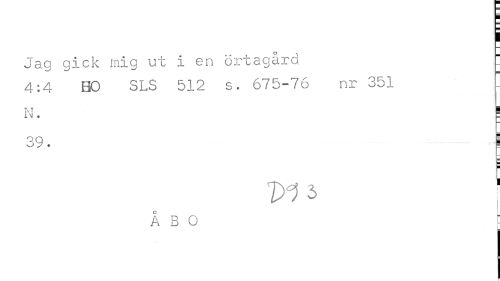 //// Jag gick mig ut i en örtagård //// 4:4 BO SLS 512 5. 675-76 nr 351 //// N. ! //// 19. ! //// H //// A B 1 - //// L ////