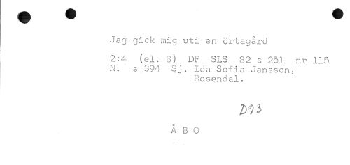 //// Jag gick mig uti en örtagård //// i //// . 2:4 (el. 8) DF SLS 82 s 251 nr 115 //// j N. s 394 Sj. Ida Sofia Jansson, //// Rosendal. ////