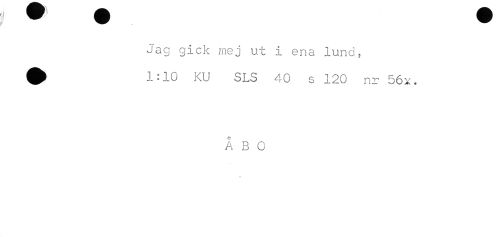 //// Jag gick mej ut i ena lund, //// ^ 1:10 KU SLS 40 s 120 nr 56x. //// ÅBO ////