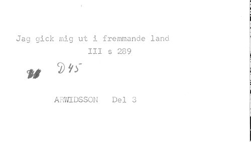 //// Jag gick mig ut i frammande land //// III s 289 //// ARWIDSS-L,;: J.al 3 ////