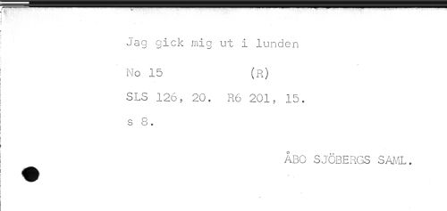 //// < t. ..... .. ... _ //// ! //// i - " - //// ii //// t .... //// ! //// i Jag gick mig ut i lunden //// < //// ; No 15 (R) //// i //// < //// ! SLS 126, 20. R6 201, 15. //// i //// t //// ! //// ! s 0. //// ? //// t //// i //// ! ÅBn SJÖBERGS //// i ^ y //// ) //// t //// i //// ) //// ) //// t ////