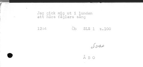 //// 1 - .. . ' * //// Jag gick mig ut i lunden //// j - att höra fåglars sång //// 12:4 Öb SLS 1 s.100 //// t //// ! ////