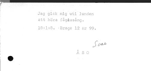 //// r .........- - ......-.............. //// # * //// Jag gick mig uti lunden //// I att hora fågåasång. //// 18:1:8. ^Brage 12 nr 99. //// i //// < //// : Å B - //// < //// H) ////