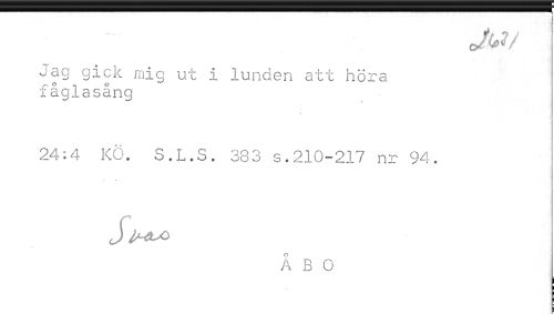 //// Jag gick mig ut i lunden att höra //// fåglasång //// 24: . Kö. S.L.S. s. 210-217 nr 11. //// J //// Å 2 0) ////