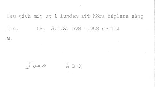 //// Jag gick mig ut i lunden att köra fåglars sång //// l.n. LF2 S.L.S. 521 s.lt.g nr 114 //// M. //// Å e O ////
