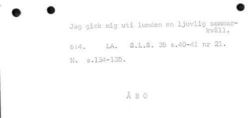 //// Jaa gick inig uii lunden ar ljuvlig sommaa- //// k v a 11, //// 6:4. LA. S.L.S. 15 a.a 1-11 rar 21. //// N. s.114-125. //// Å 2 2 ////