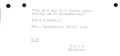 //// .} "Jag gick mig ut i lunken gröna //// lustigt om en mioaommaaaag." //// (text o.beska.) //// Dal., G a r p e n b a a- g^, 90:47, s . 20 //// D 5c //// U L k A //// Sångl c2aaa ////