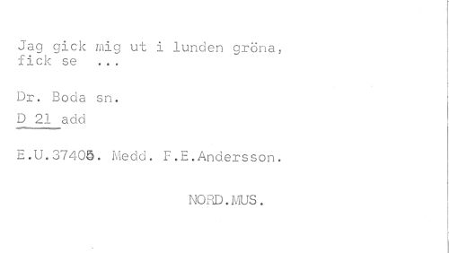 //// Jag gick mig ut i lunden gröna, //// fick se ... //// t //// Dr. Boda sn. //// D^21 add //// BU. 37405. Medd . F . E. Ändersson. //// NORD. MUS. //// t ////