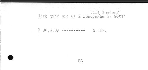 //// till lunden/ //// ; Jazg gick mig ut i lunden/öm en kväll //// B 90,s.39 3 str. //// t //// : //// j //// i - //// i ^ ////