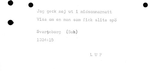 //// Jag geck mej ut i midsommarnatt //// ^ Visa om en man som fick slita spö //// Svar^eborg (Soh) //// 1324:15 //// L U F ////