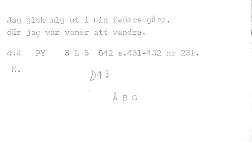 //// Jag gick mig ut i min faders gård, //// där jag var vaner att vandra. I //// i //// 4:.';- PY SLS 5.,-2 nr 2G1. //// O //// A B ////