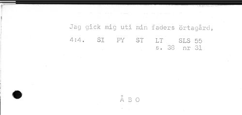 //// p- ..... //// ) ' //// J *'* * * " " - " — ' - -- -- - //// 1 //// : Jag gick mig uti min faders örtagård, //// ! 4:4. SI PY SI LT SLS 55 //// . s. 38 nr 31 //// i //// j //// i jh^ //// ^ ÅBO ////