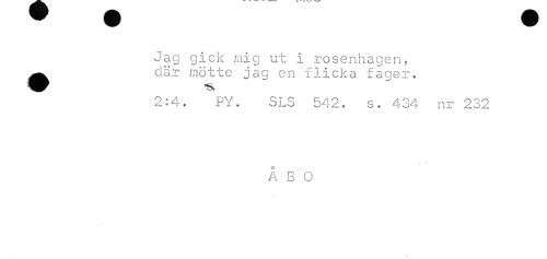 //// Jag gick mig ut i rosenhagen, //// ^ där mötte jag en flicka fager. //// 2:4. PY. SLS 542. s. 434 nr 232 //// A B O ////