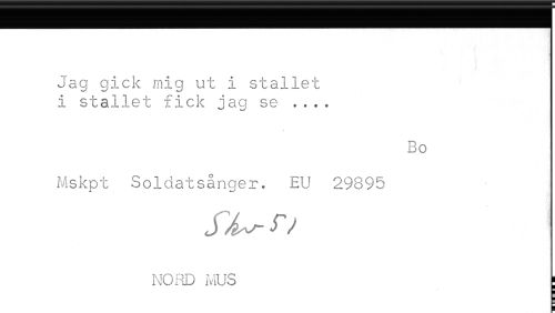 //// Jag gick mig ut i stallet //// i stallet fick jag se .... //// Bo //// sk;. ' Soloaasån-rr. EU 2t8t5 //// akatj MUS ; ////