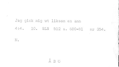 //// t* ^ //// Jag gick mig ut liksom en ann //// 4:4. 10. SLS 512 s. 680-81 nr 354. //// i //// i //// N. //// . //// Å 3 G j ////