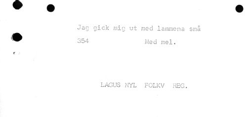 //// Jag gick mig ut med lammena små //// ^^ 354 Med mel. //// t //// NYL FOLK.V .:22G. ////
