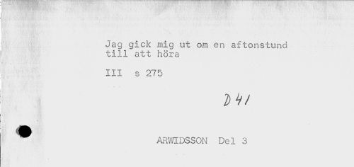 //// : Jag gick mig ut om en aftonstund //// I till att höra //// . //// III s 275 //// ' - //// '<' ' ' ' ' //// . - . //// ARWIDSSON De1 3 ////