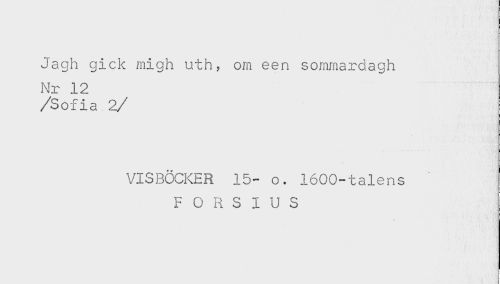 //// Jagh gick migh uth, om een sommardagh //// Nr 12 //// /Sofia 2/ //// VISBÖCKER 15- o. 1600-talens //// F O R S I U S ////