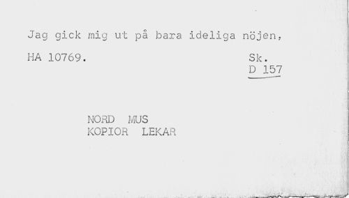 //// * //// Jag gick mig ut på bara ideliga nöjen. //// HA 10769. Sk. //// D 157 //// . //// NORD ms //// KOPIOR LEKAR //// - ////