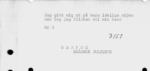 //// Jag gick mig ut på bara ideliga nöjen //// der tog jag flickan uti min hand //// * //// Nr 3 //// B A R F 0 D //// SKÅNSKE JULELEGE ////