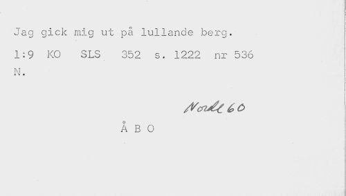 //// Jag gick mig ut på lullande berg. //// 1:9 KO SLS 352 s. 1222 nr 536 //// K. //// ÅBO ////