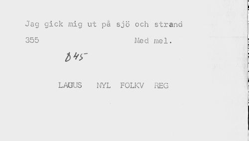 //// Jag gick mig ut på sjö och strand //// 355 Med mel. //// i //// t //// } //// LAGUS NYL FOLKV REG //// ) //// t //// < //// i ////