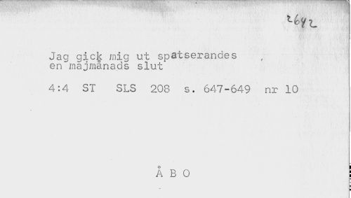 //// Jag gicik mig ut spatserandes //// en majmånads slut //// 4:4 SI SLS 208 s. 647-649 nr 10 //// ÅBO ! //// * ////